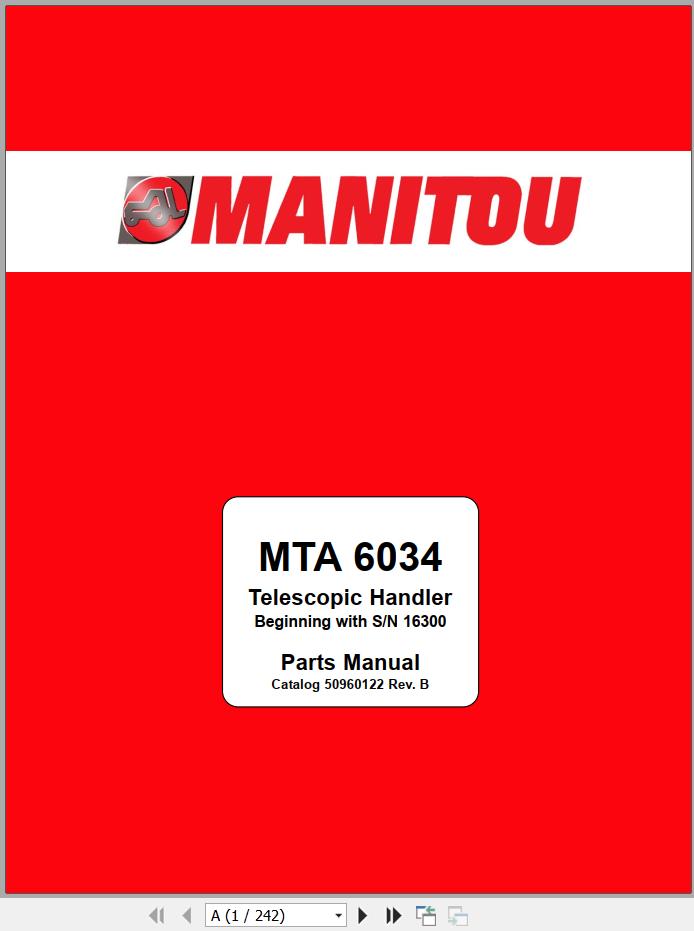 Manitou MTA 6034 Parts Manual 50960122 Rev. B