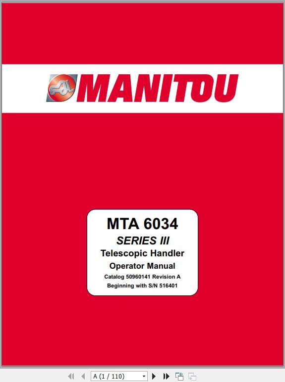 Manitou MTA 6034 Series III Operator's Manual 50960141A