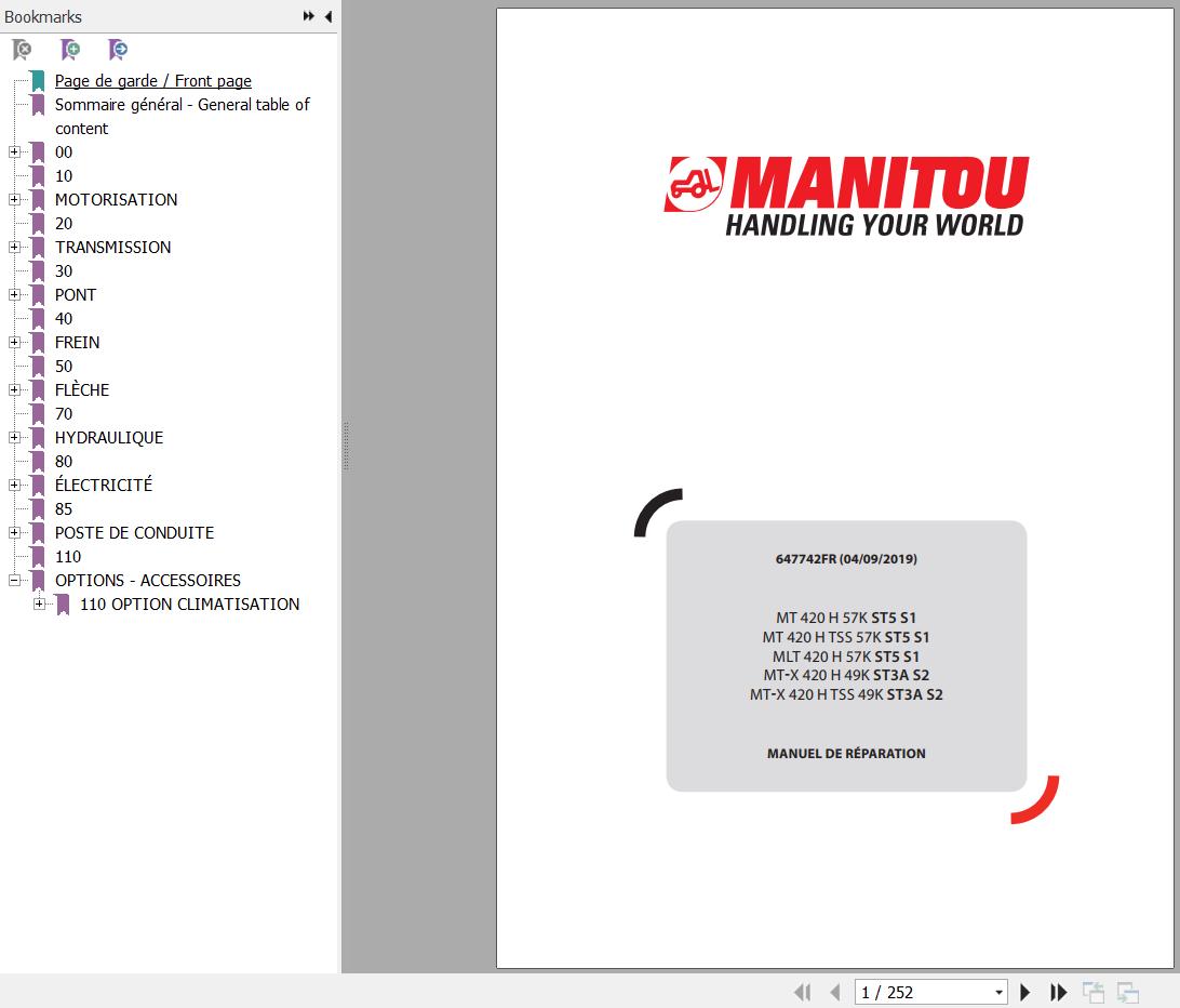 The Bookmarks Of Manitou MT(MLT,MT-X)420H (TSS) 57K ST5 S1 49K ST3A S2 Telescopic Handlers Repair Manual: