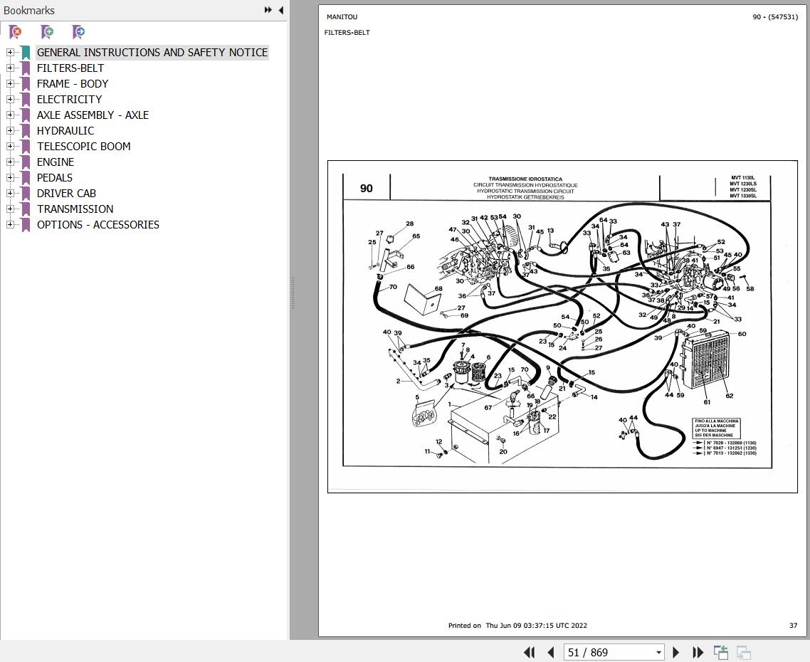 The Bookmarks Of Manitou MVT 1130 L COMFORT LINE MOT 1004 4 Telescopic Handler Parts Catalog: