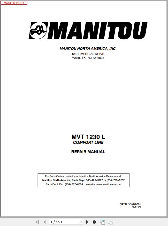 Manitou MVT 1230 L Comfort Line Service Manual 648001