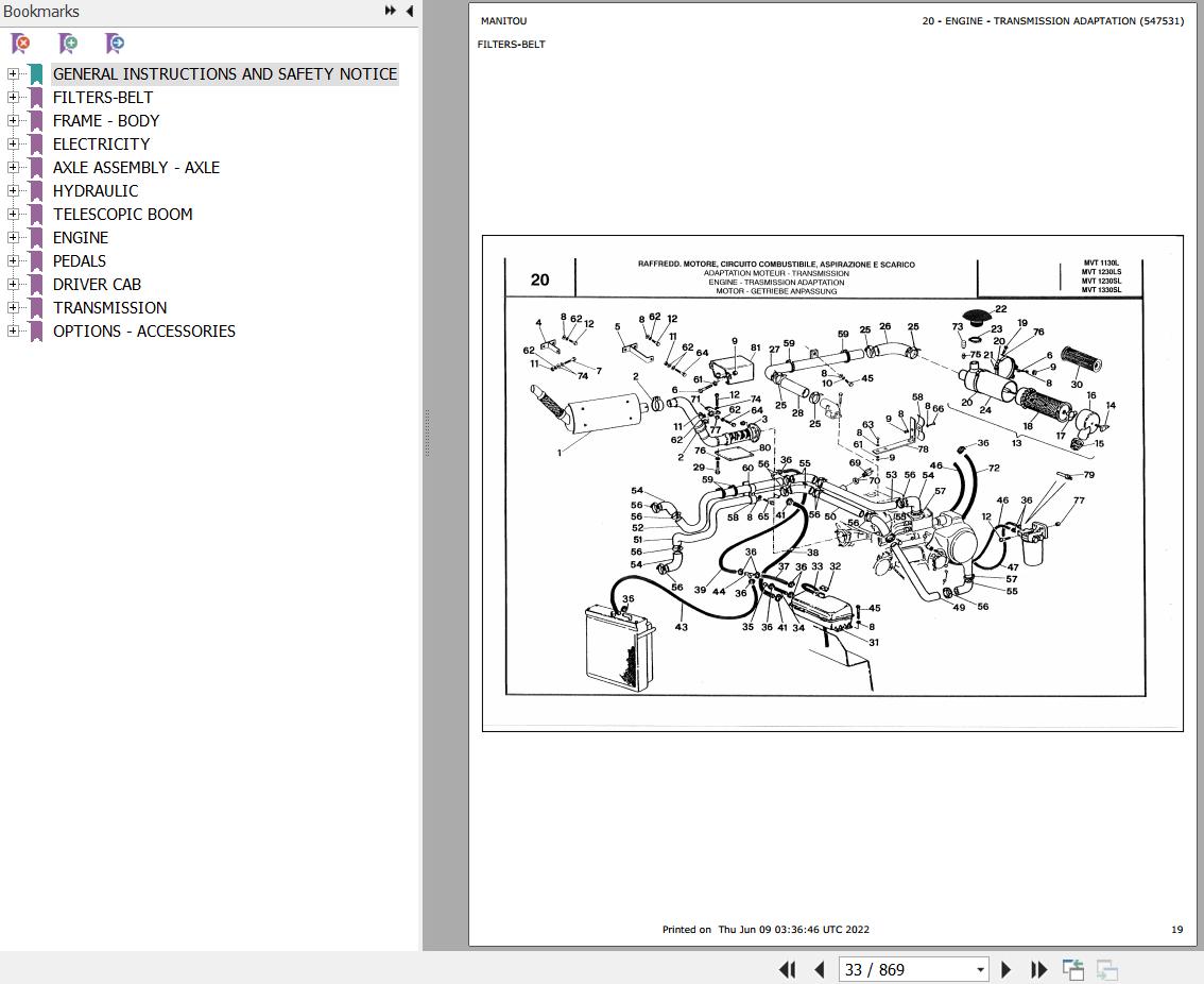 The Bookmarks Of Manitou MVT 1330 SL COMFORT LINE MOT 1004 4 Telescopic Handler Parts Catalog: