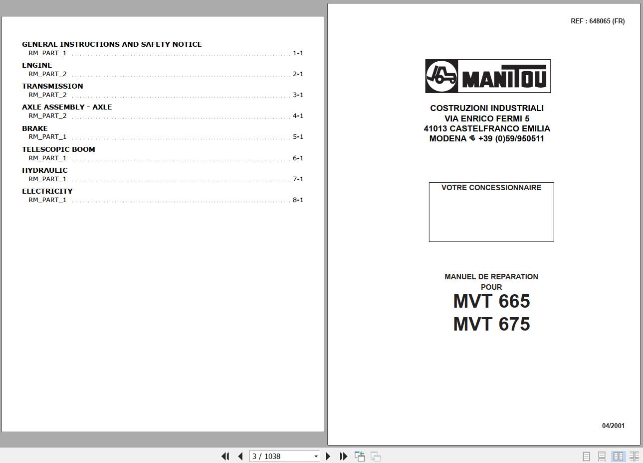 Manitou MVT 665 675 Turbo COMFORT LINE MOT 1004 4T Repair Manual 648065