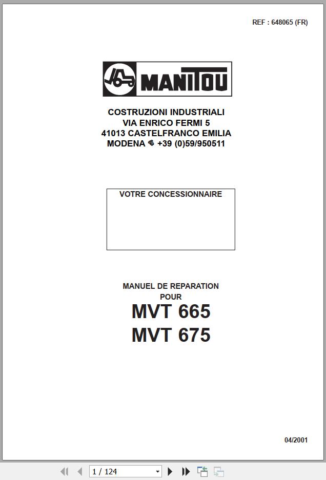 Manitou MVT 665 TURBO COMFORT LINE MOT 1004 4T MVT 675 TURBO COMFORT LINE MOT 1004 4T Repair Manual 648065 FR 124 Pages