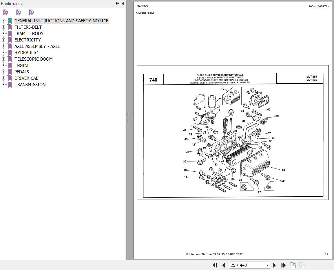 The Bookmarks Of Manitou MVT 675 TURBO COMFORT LINE MOT 1004 4T Telescopic Handler Parts Catalog: