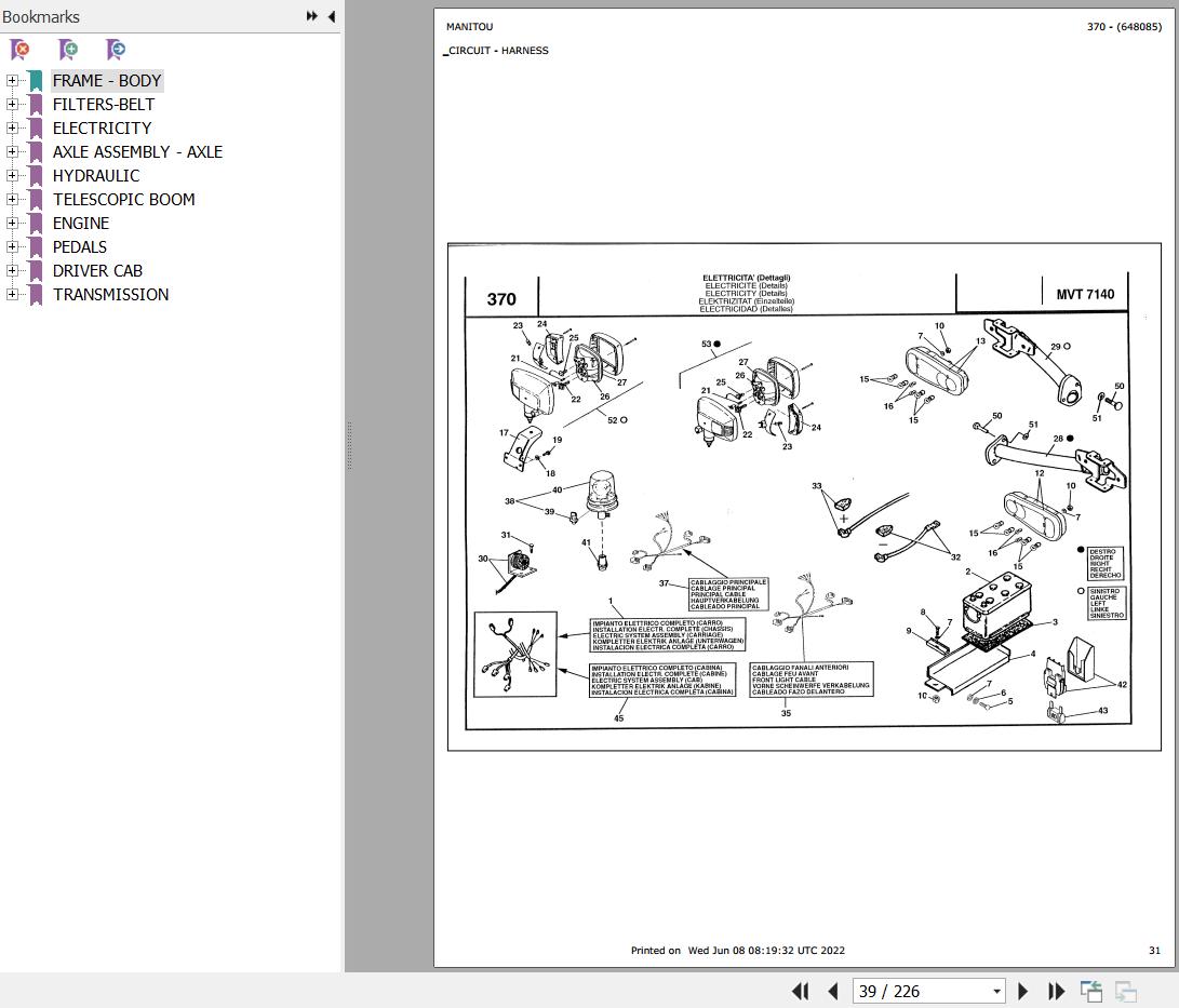 The Bookmarks Of Manitou MVT 7140 10100 Telescopic Handler Parts Catalog: