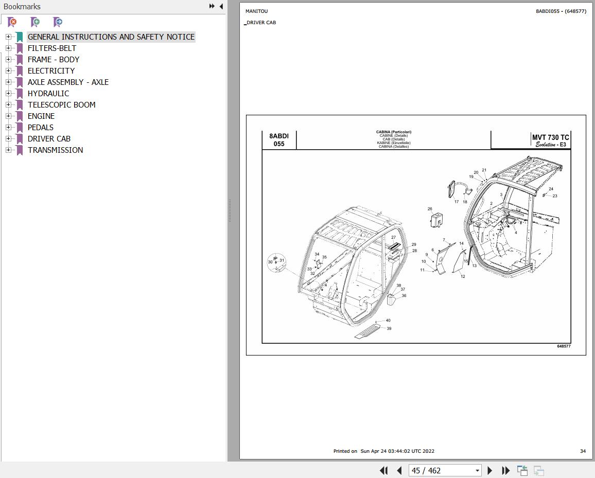 Manitou MVT 730 TURBO COMPACT EVOLUTION E3 Parts Catalog 648577