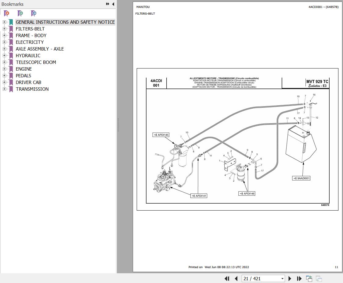 Manitou MVT 929 TURBO COMPACT EVOLUTION E3 Parts Catalog 648578