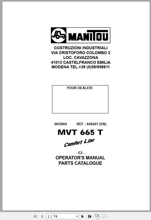 Manitou MVT 665 T Comfort Line E2 Operator's Manual 648261 EN