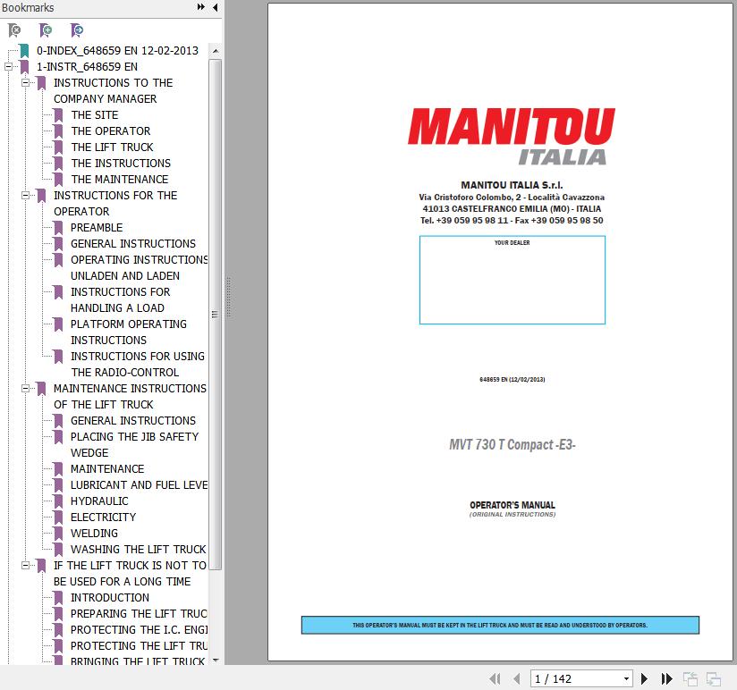 The Bookmarks of Manitou MVT 730 T Compact E3 Operator's Manual: