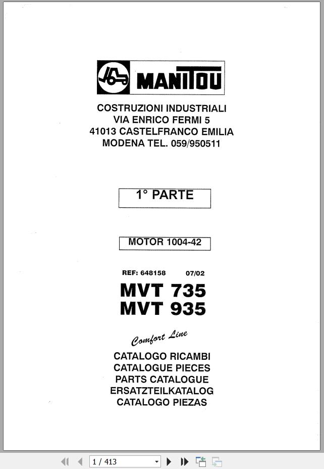 Manitou MVT735 935 COMFORT LINE MOT 1004-42 Parts Catalog 648158