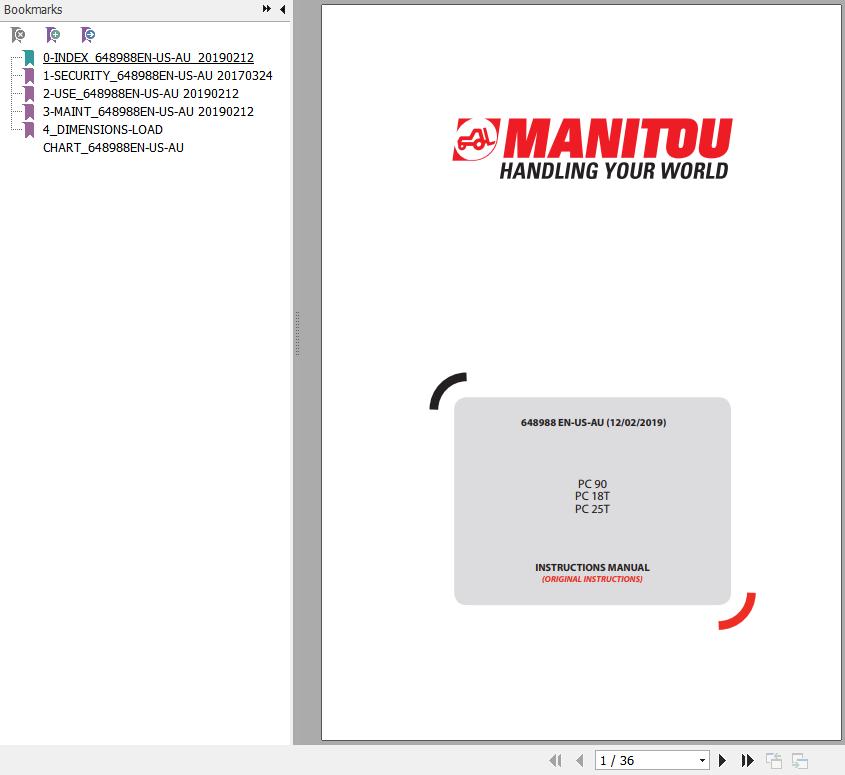 The Bookmarks of Manitou PC 90 PC 18T PC 25T Operator's Manual: