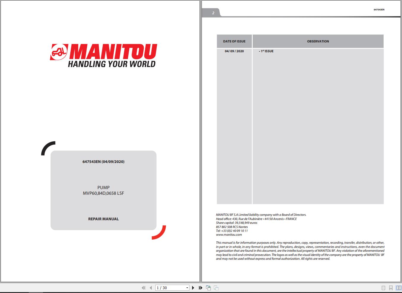 Manitou Pump MVP60,84D,0658 LSF Repair Manual 647543EN