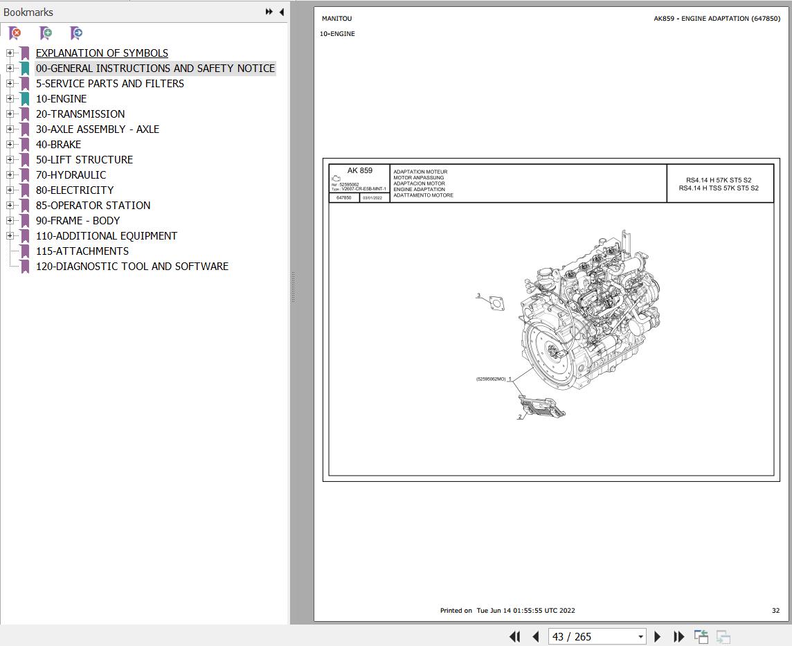 The Bookmarks Of Manitou RS4-14 H 57K ST5 S2 Telescopic Handler Parts Catalog: