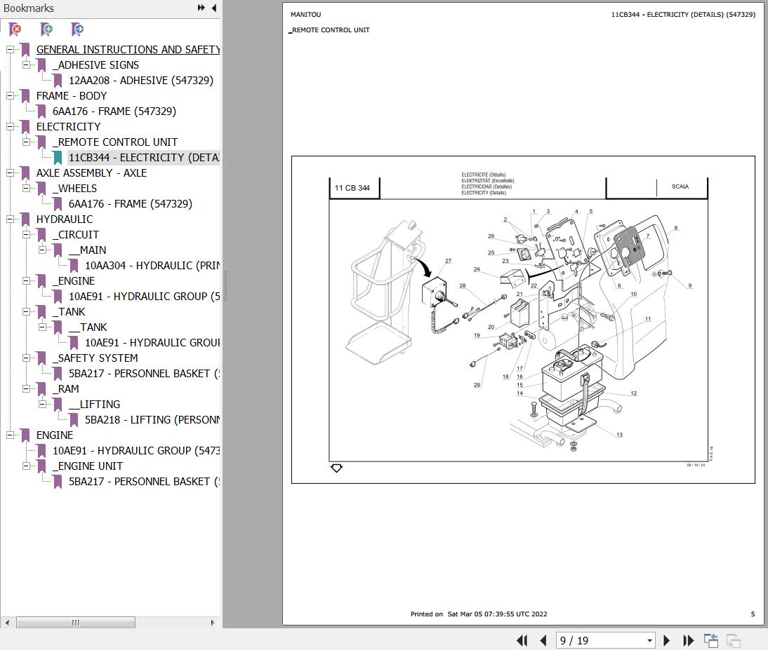 The Bookmarks Of Manitou SCALA Mobile Elevating Platform Parts Catalog: