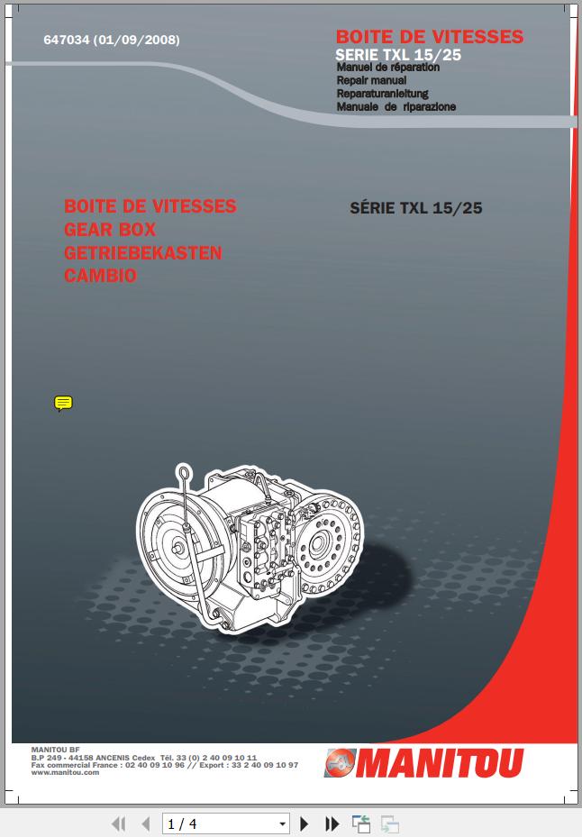 Manitou Series TXL 15 25 Gear Box Repair Manual 647034 Pages 1-4