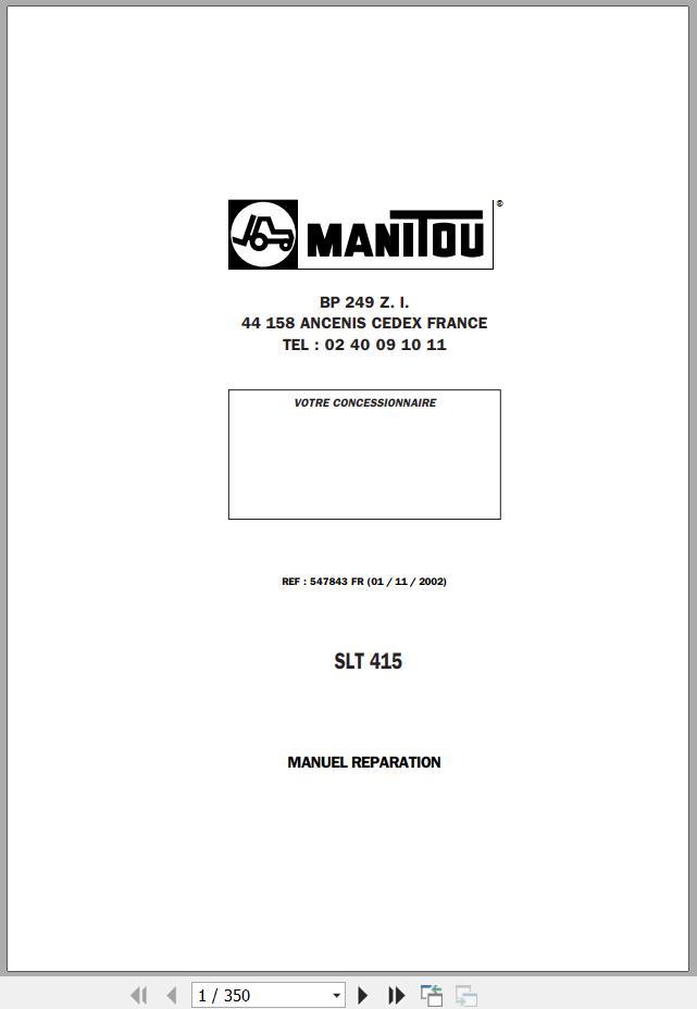 The Bookmarks Of Manitou SLT 415 Repair Manual: