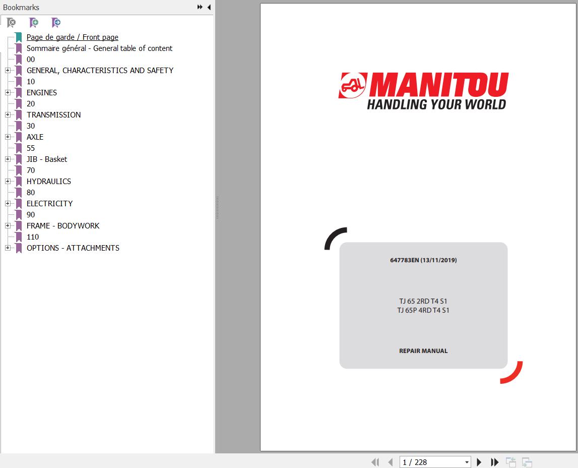 Manitou TJ 65 2RD T4 S1 TJ 65P 4RD T4 S1 Repair Manual 647783