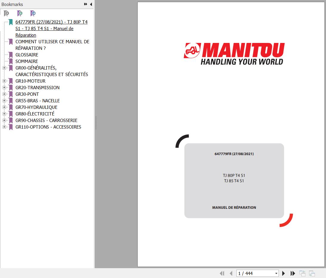 Manitou TJ 80P T4 S1 TJ 85 T4 S1 Repair Manual 647779