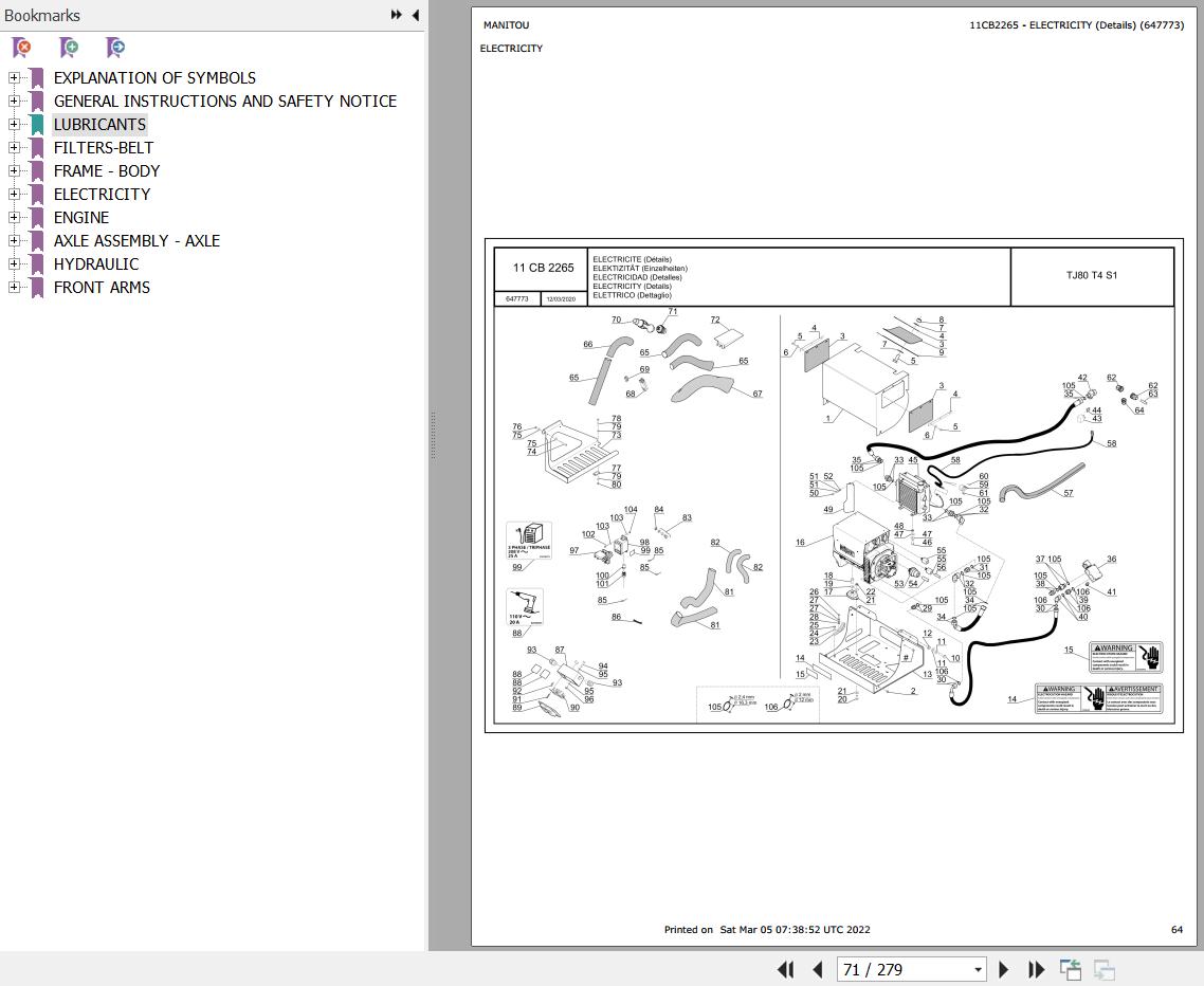 Manitou TJ 85 T4 S1 Parts Catalog 647773