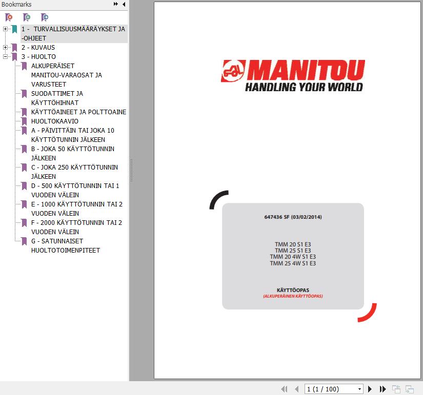 Manitou TMM 20 S1 E3 TMM 25 S1 E3 TMM 20 4W S1 E3 TMM 25 4W S1 E3 Operator's Manual 647436 SF
