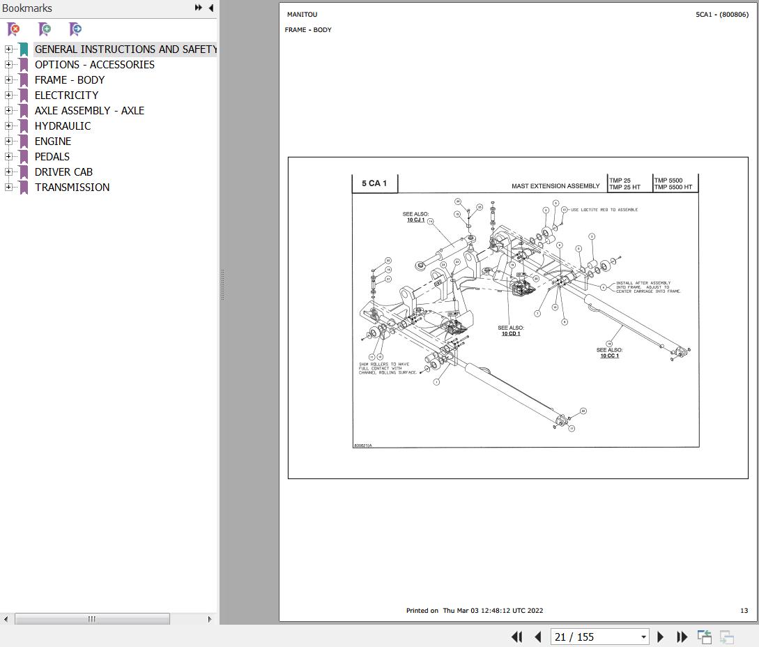 The Bookmarks Of Manitou TMP25 Truck Mounted Telehandler Parts Catalog: