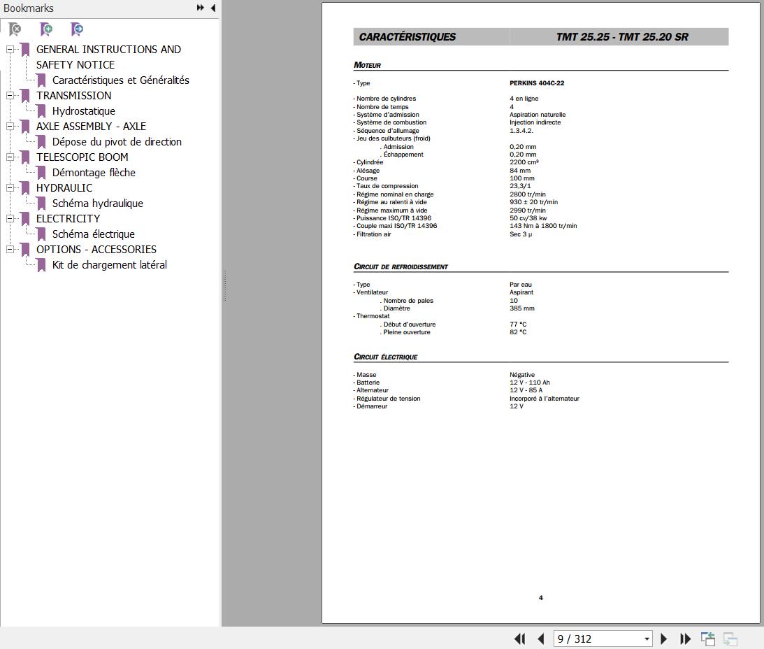 The Bookmarks Of Manitou TMT 25-20C 25-20SR 25-15CR 25-25S 25-25 20-17C S1 E2 Forklift Repair Manual: