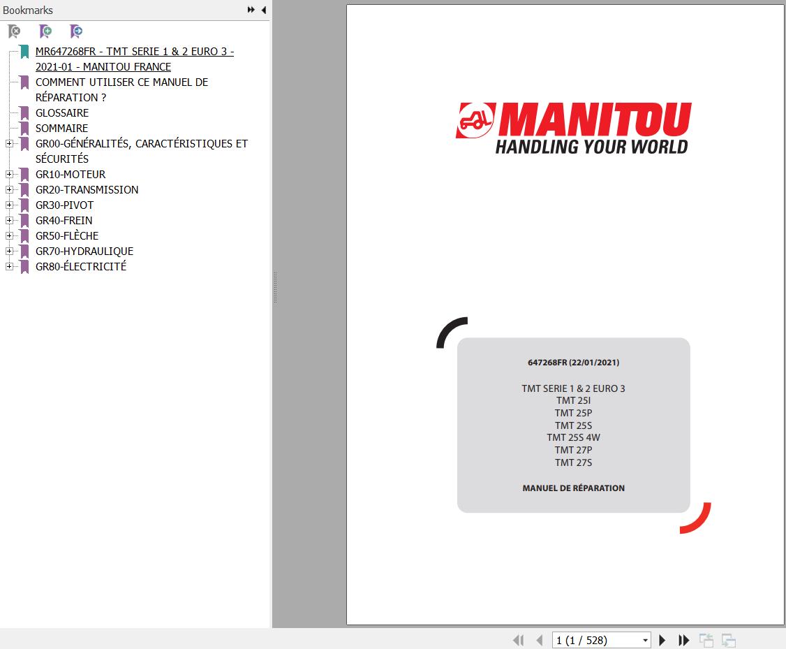 The Bookmarks Of Manitou TMT 25 27 I P S 4W SERIE 1 & 2 EURO 3 Forklift Repair Manual: