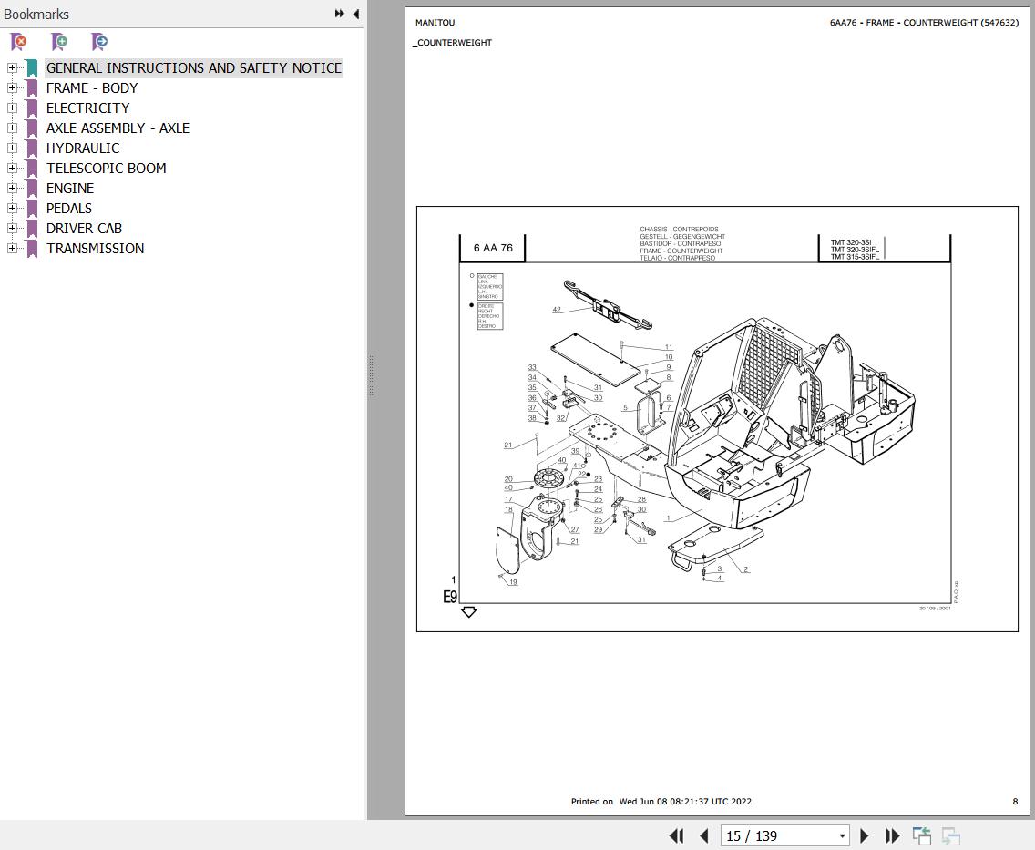 The Bookmarks Of Manitou TMT 315-3 SIFL Telescopic Handler Parts Catalog: