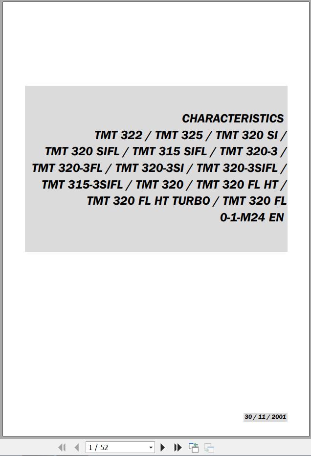 Manitou TMT 315SIFL 320 Si FL SIFL FLHT (Turbo) 320-3 FL SI SIFL 325 Characteristics Repair Manual 52 Pages EN