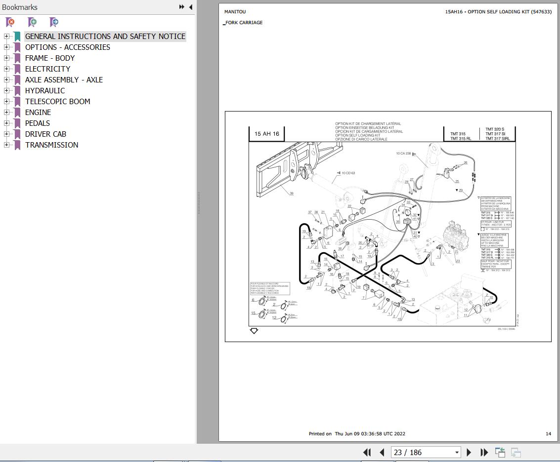 The Bookmarks Of Manitou TMT 317 SI RL Telescopic Handler Parts Catalog:
