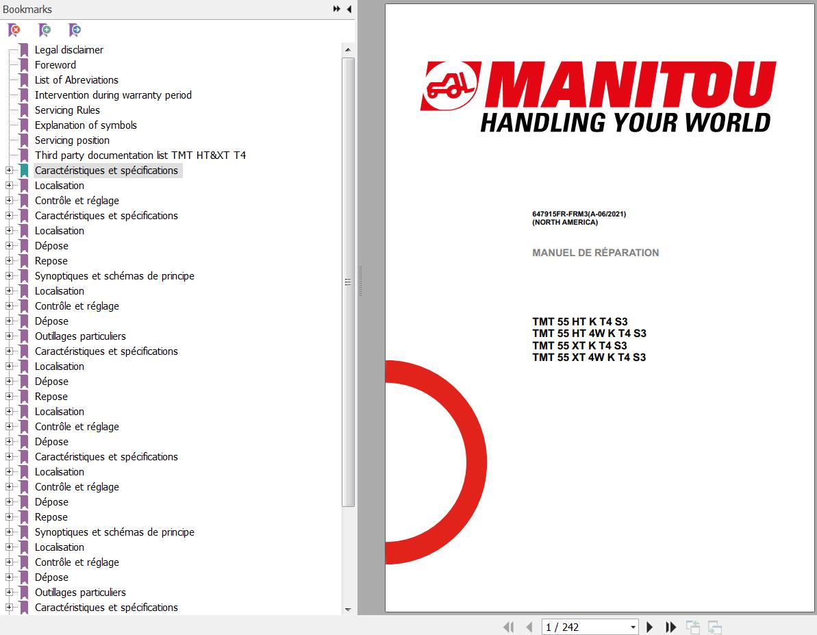 Manitou TMT 55 HT 55 HT 4W 55 XT 55 XT 4W K T4 S3 Repair Manual 647915