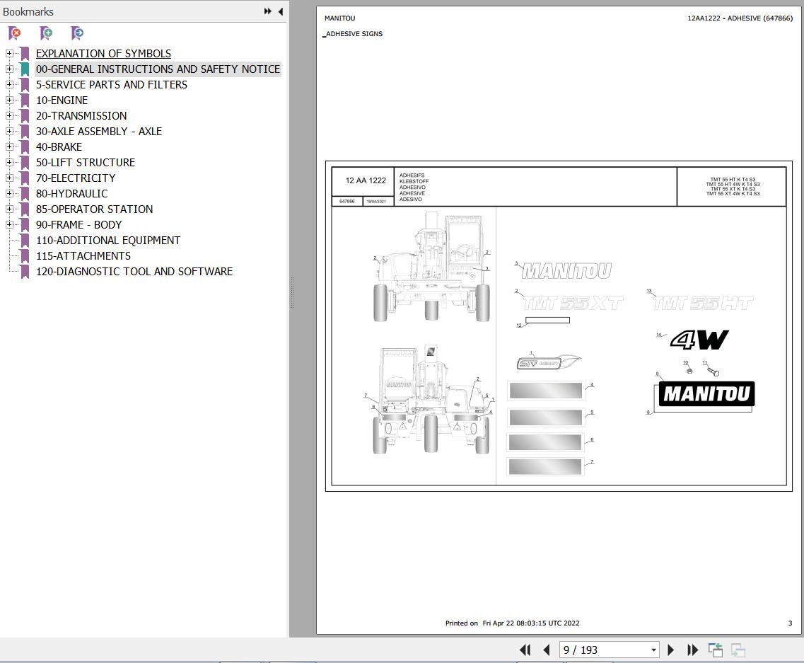 Manitou TMT 55 HT (4W) K T4 S3 TMT 55 XT (4W) K T4 S3 Parts Catalog 647866