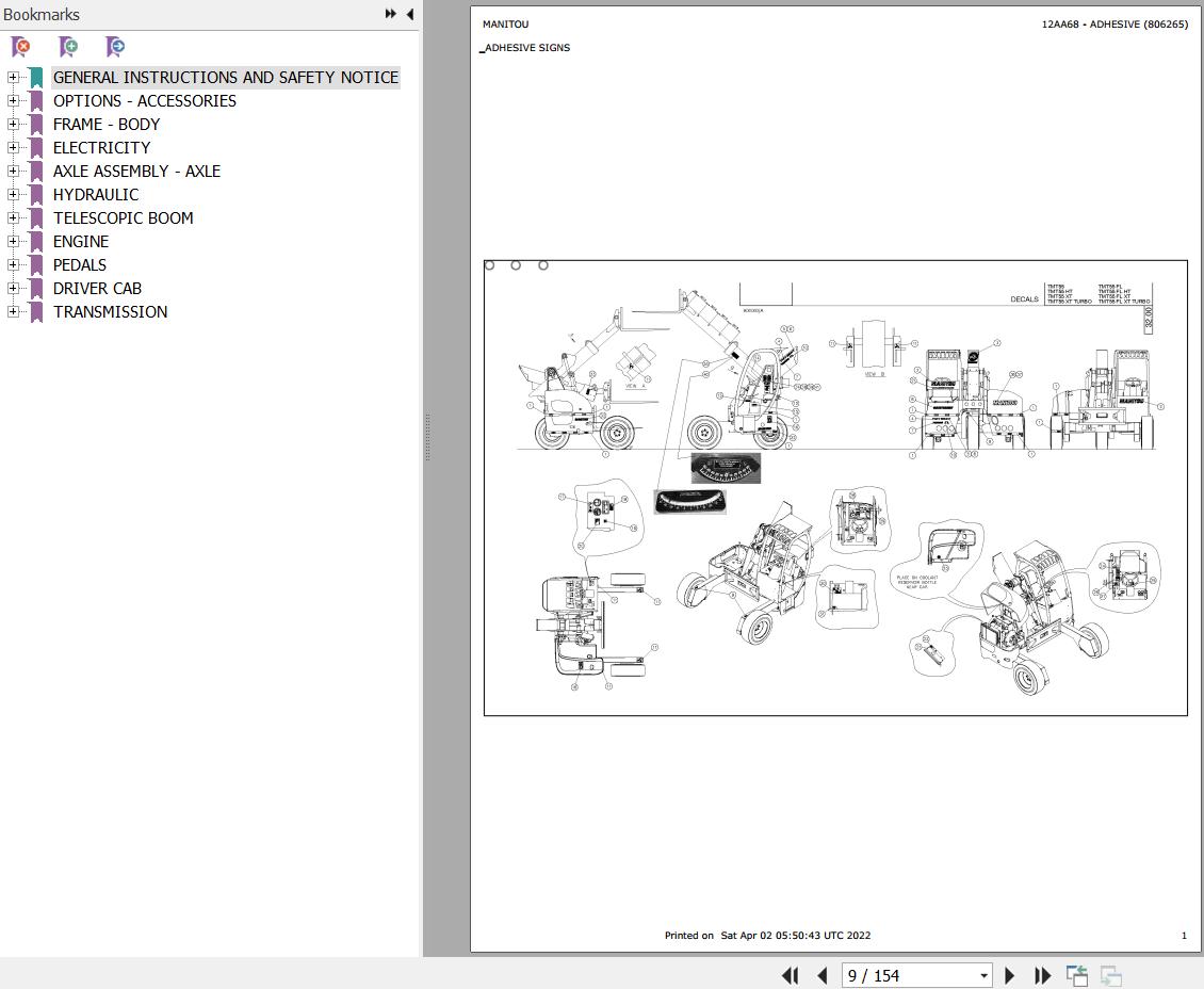 The Bookmarks Of Manitou TMT 55 XT Telescopic Handler Parts Catalog:
