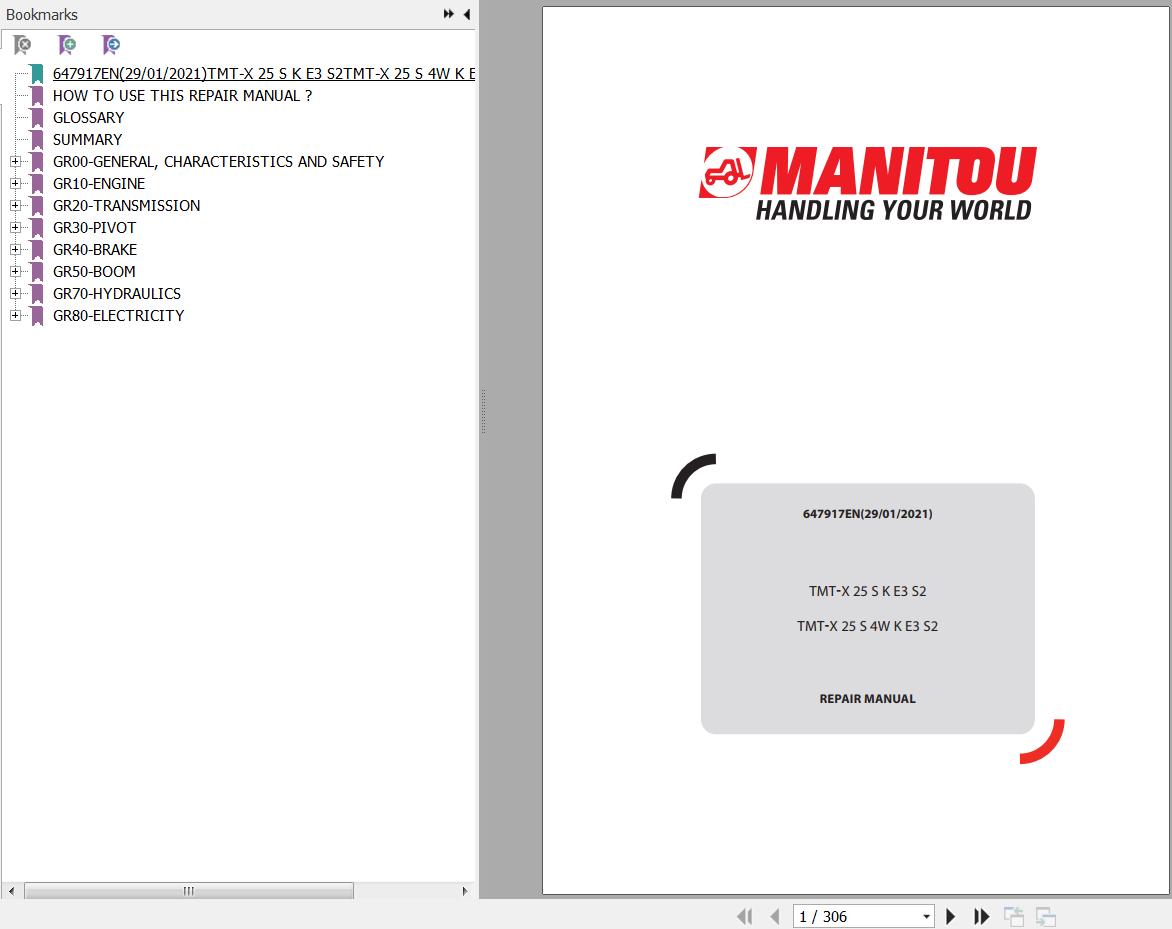 The Bookmarks Of Manitou TMT-X 25 S K E3 S2 TMT-X 25 S 4W K E3 S2 Truck Mounted Telehandler Repair Manual: