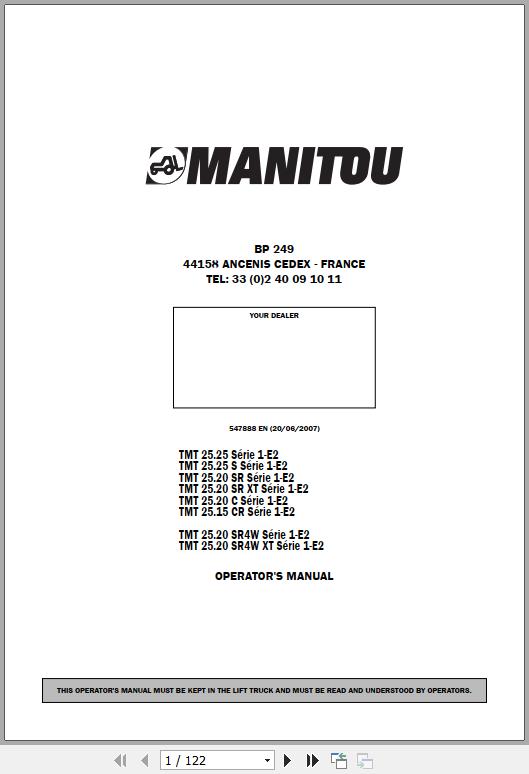 Manitou TMT 25.25 Series 1-E2 To TMT 25.20 SR4W XT Series 1-E2 Operator's Manual 547888