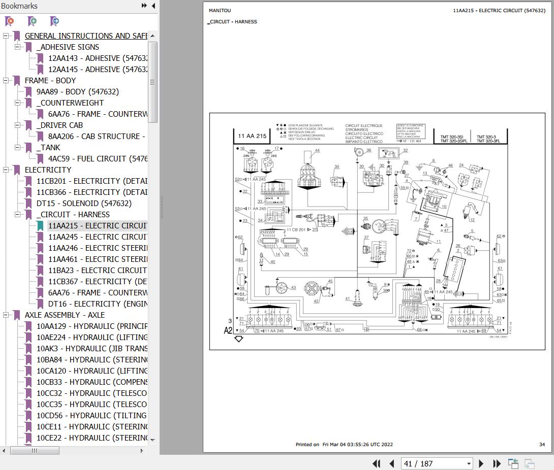 The Bookmarks Of Manitou TMT320-3 SI Truck Mounted Telehandler Parts Catalog: