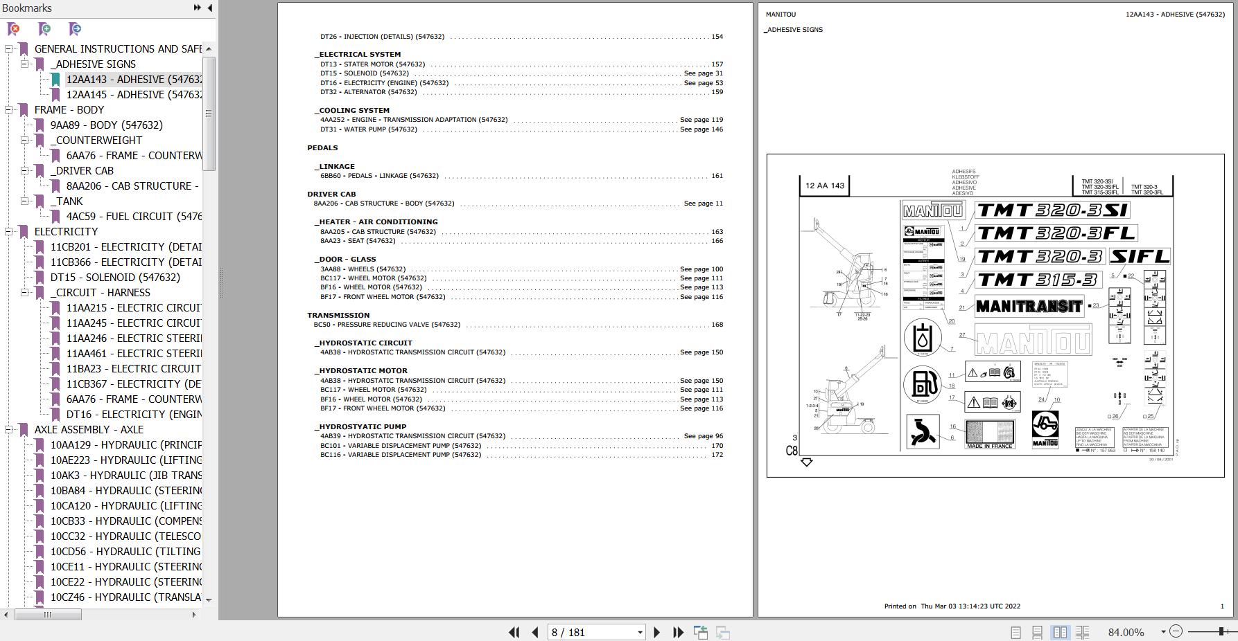 Manitou TMT320-3 SIFL Parts Catalog 547632