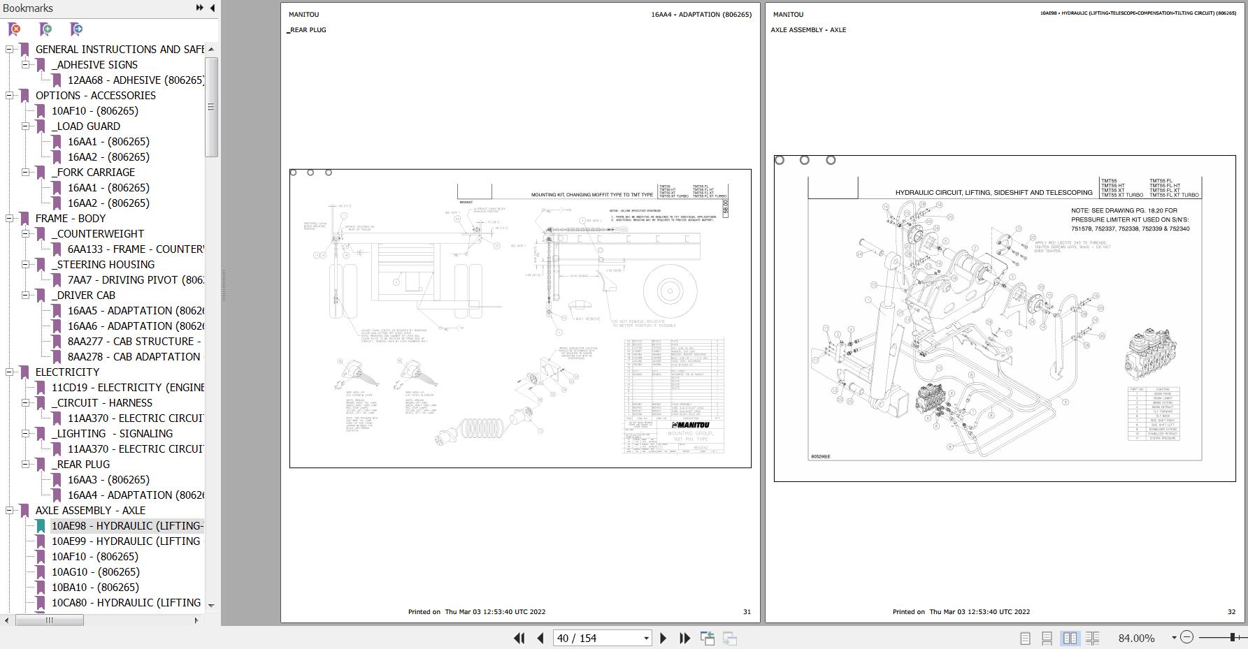 The Bookmarks Of Manitou TMT55 FL HT Truck Mounted Telehandler Parts Catalog: