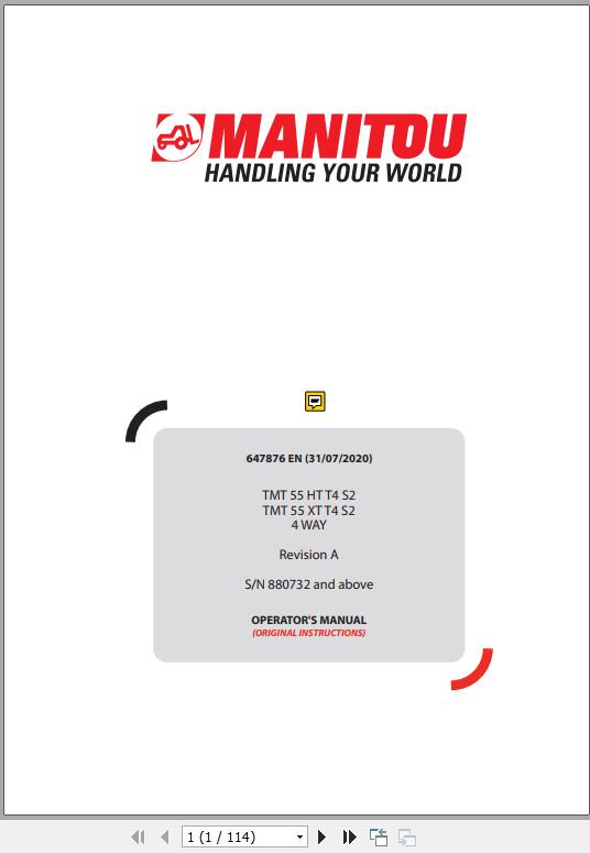 Manitou TMT 55 HT T4 S2 4WAY TMT 55 XT T4 S2 4WAY Operator's Manual 647876 US