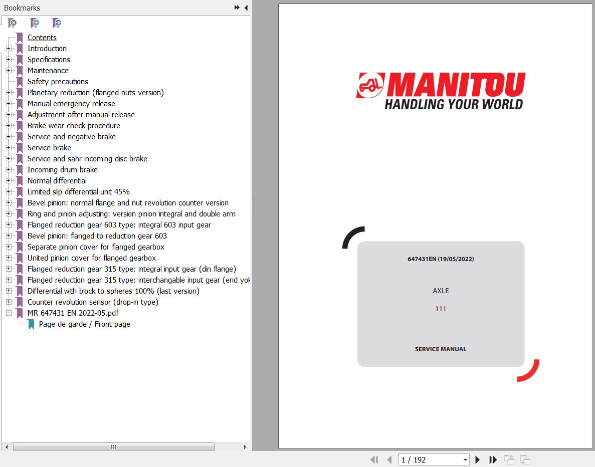The Bookmarks Of Manitou Type 111 Axle Repair Manual: