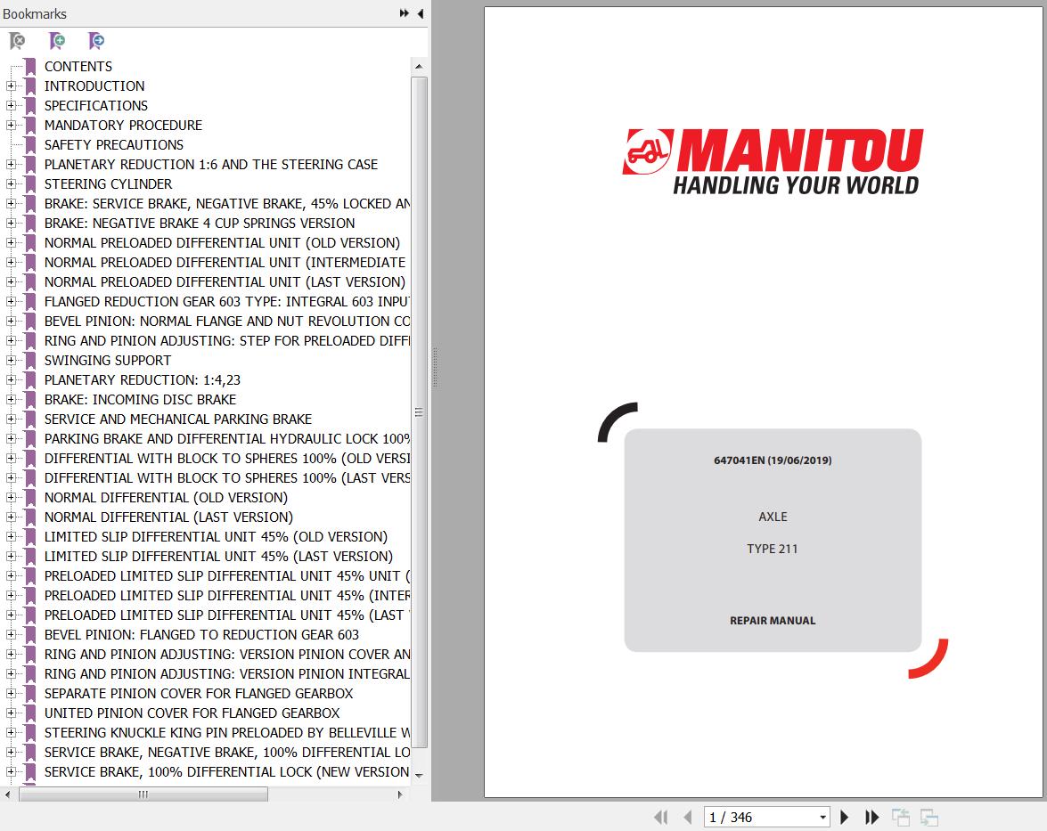 The Bookmarks Of Manitou Type 211 Axle Assembly Repair Manual: