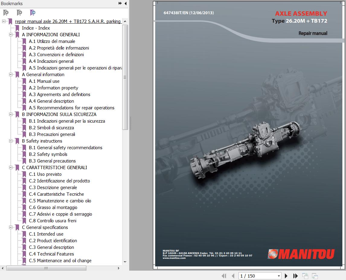 Manitou Type 26.20M + TB172 Axle Assembly Repair Manual 647438