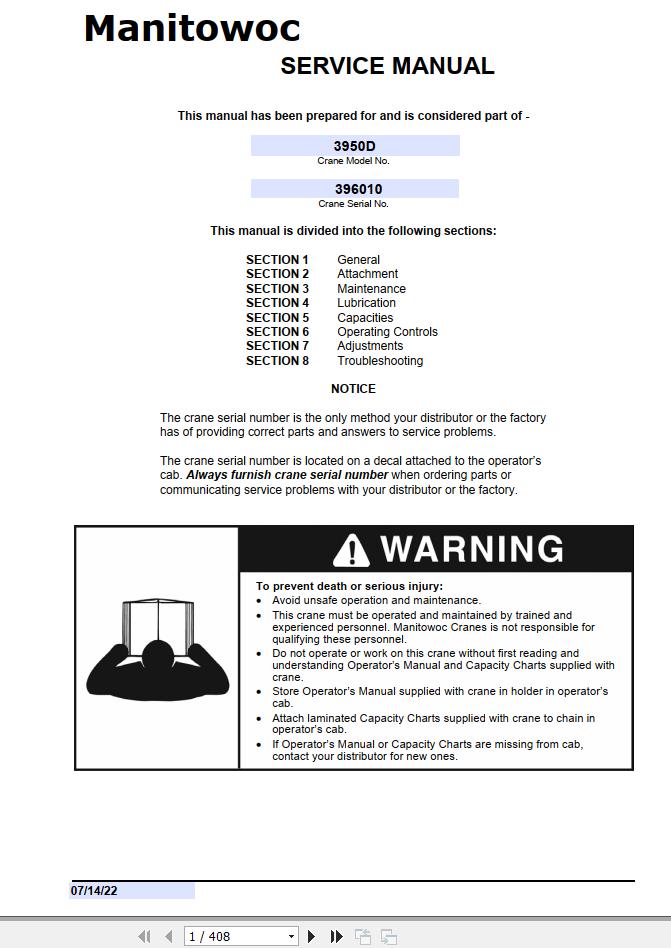 The Bookmarks of Manitowoc 3950D Service Manual :