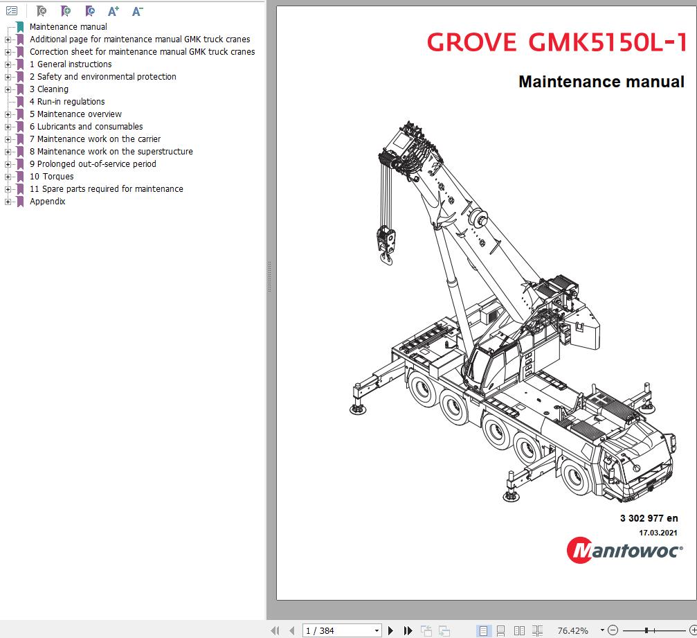 Manitowoc GMK5150L-1 Maintenance Manual 3302977 (384 Pages)