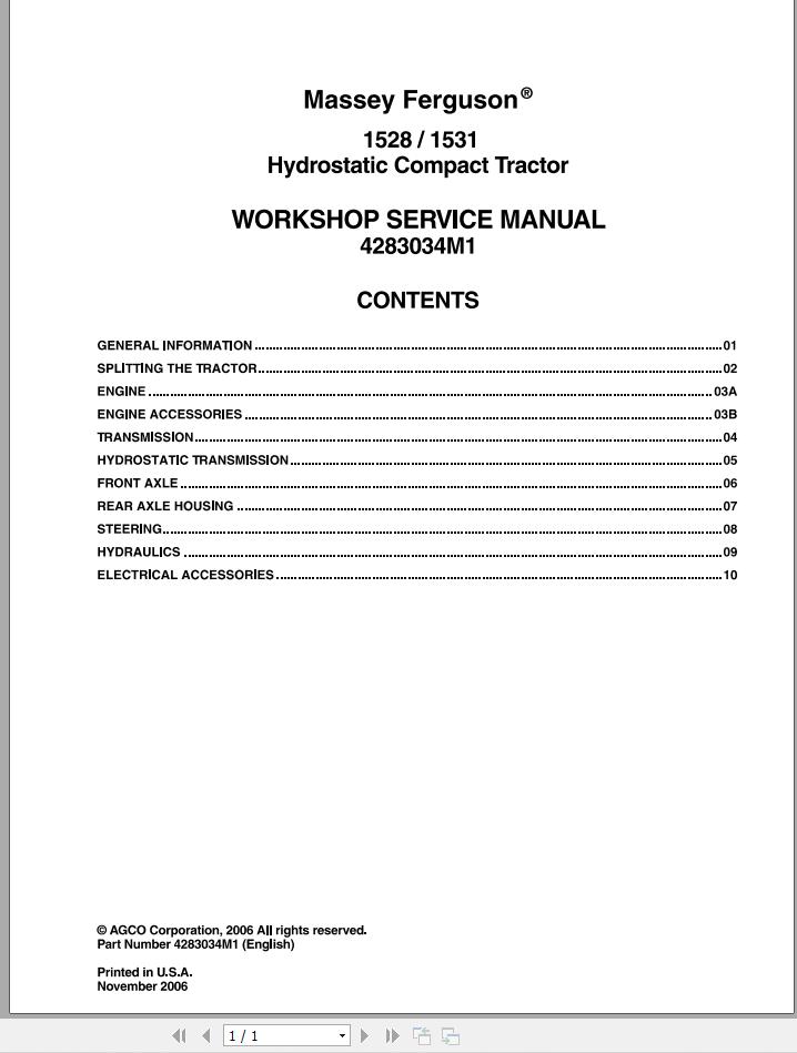 Massey Ferguson 1528 1531 Workshop Service Manual 4283034M1