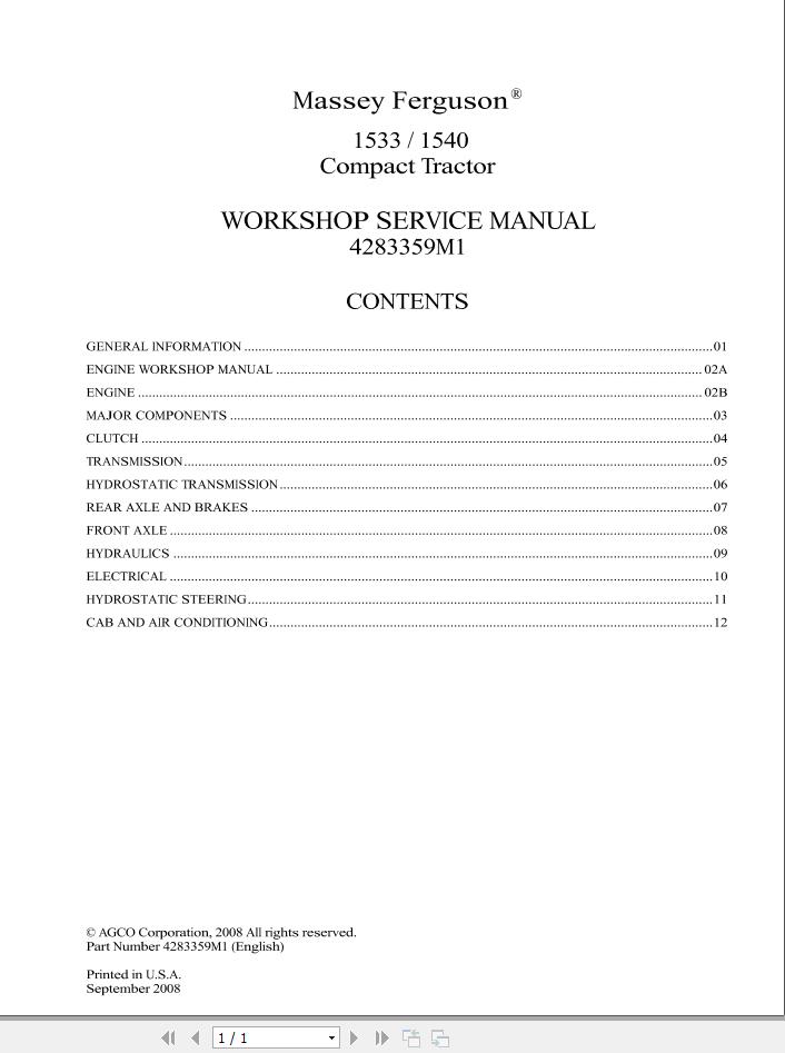 Massey Ferguson 1533 1540 Workshop Service Manual 4283359M1