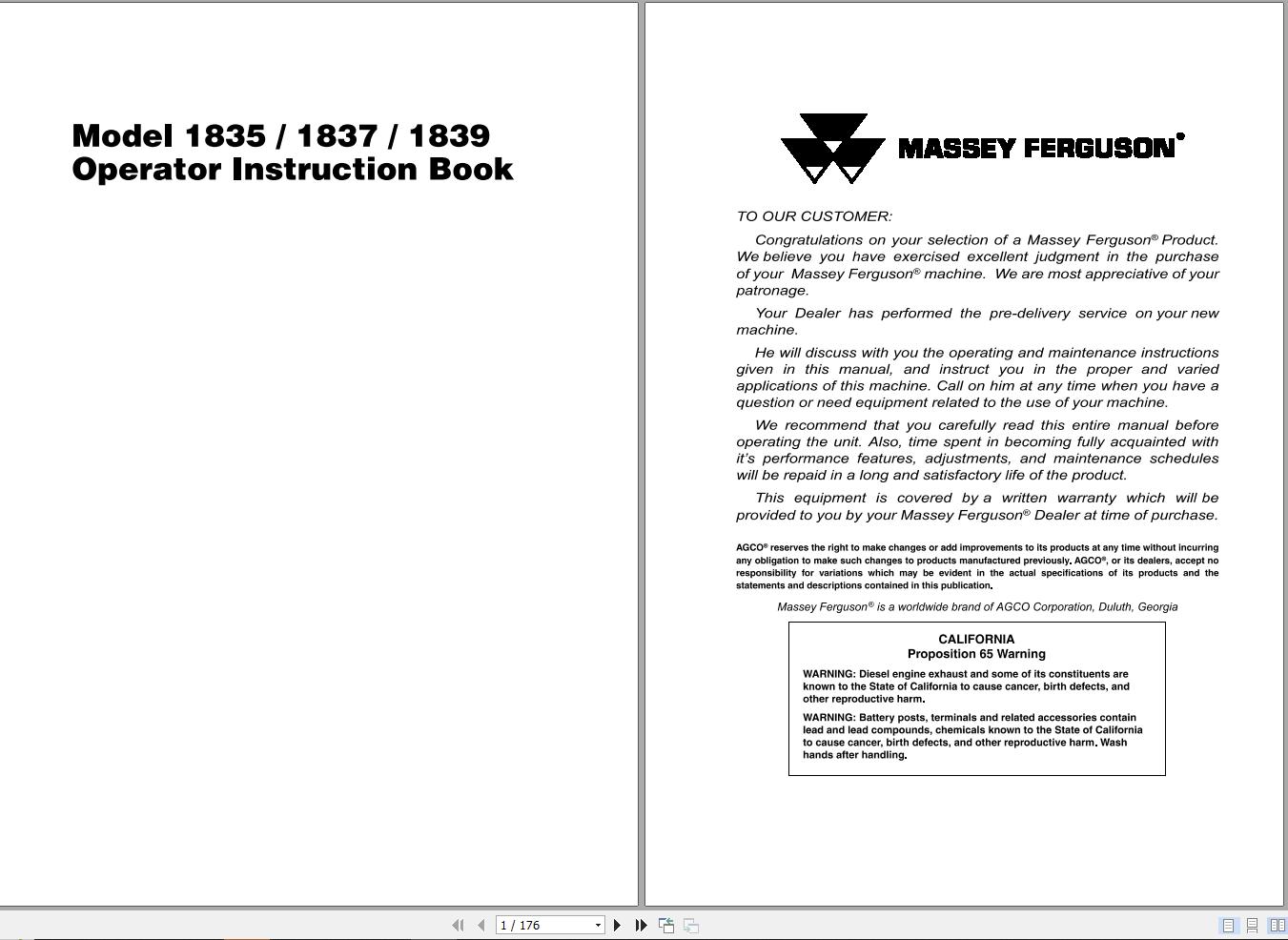 Massey Ferguson 1835 1837 1839 Operators Manual 700735840F