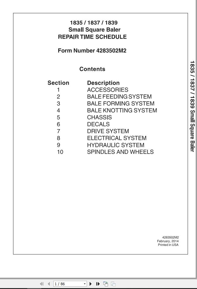 Massey Ferguson 1835 1837 1839 Parts Manual 4283502M2