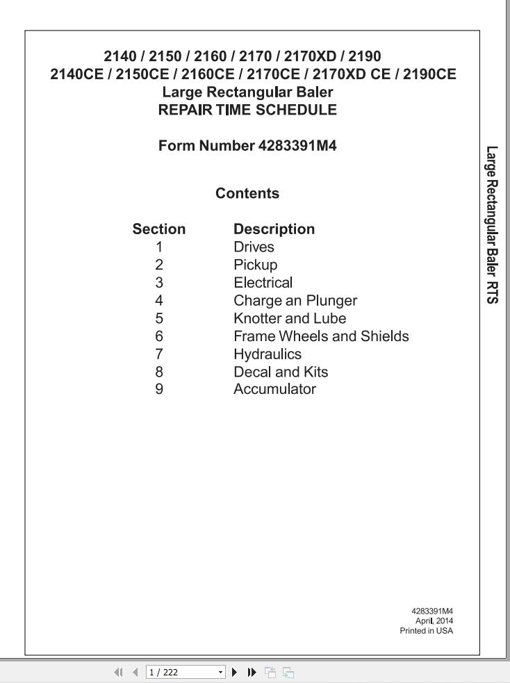 Massey Ferguson 2140 to 2190CE Parts Manual 4283391M4
